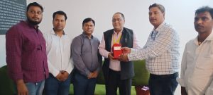 श्री पाठक का अभिनंदन करते पदाधिकारी व अन्य।