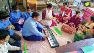 कार्यक्रम दूसरे सत्र में प्रधानाध्यापक मुकेश कुमार के द्वारा बी.आर.सी. से खुशबू राय द्वारा लाए गए सिंथेसाइजर, तबला आदि वाद्य यंत्रों का उद्घाटन किया गया। इस क्रम में शिक्षिका बिमला कुमारी ने शिक्षकों के संगति में भोला बाबा के पांच गीत का गायन प्रस्तुत किया।