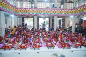 समान परिधान व श्रृंगार में सजी 61 महिलाएं पाठ में हुई शामिल :