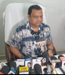 संवाददाताओं से बात करते चेयरमैन एसके मंडल।