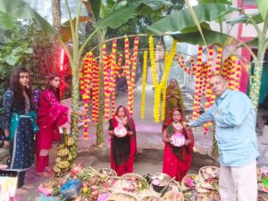 पूजा-अर्चना के बाद व्रतियों ने पारण कर चार दिन के कठोर व्रत का समापन किया।