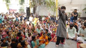 भजन प्रस्तुत करते कलाकार।